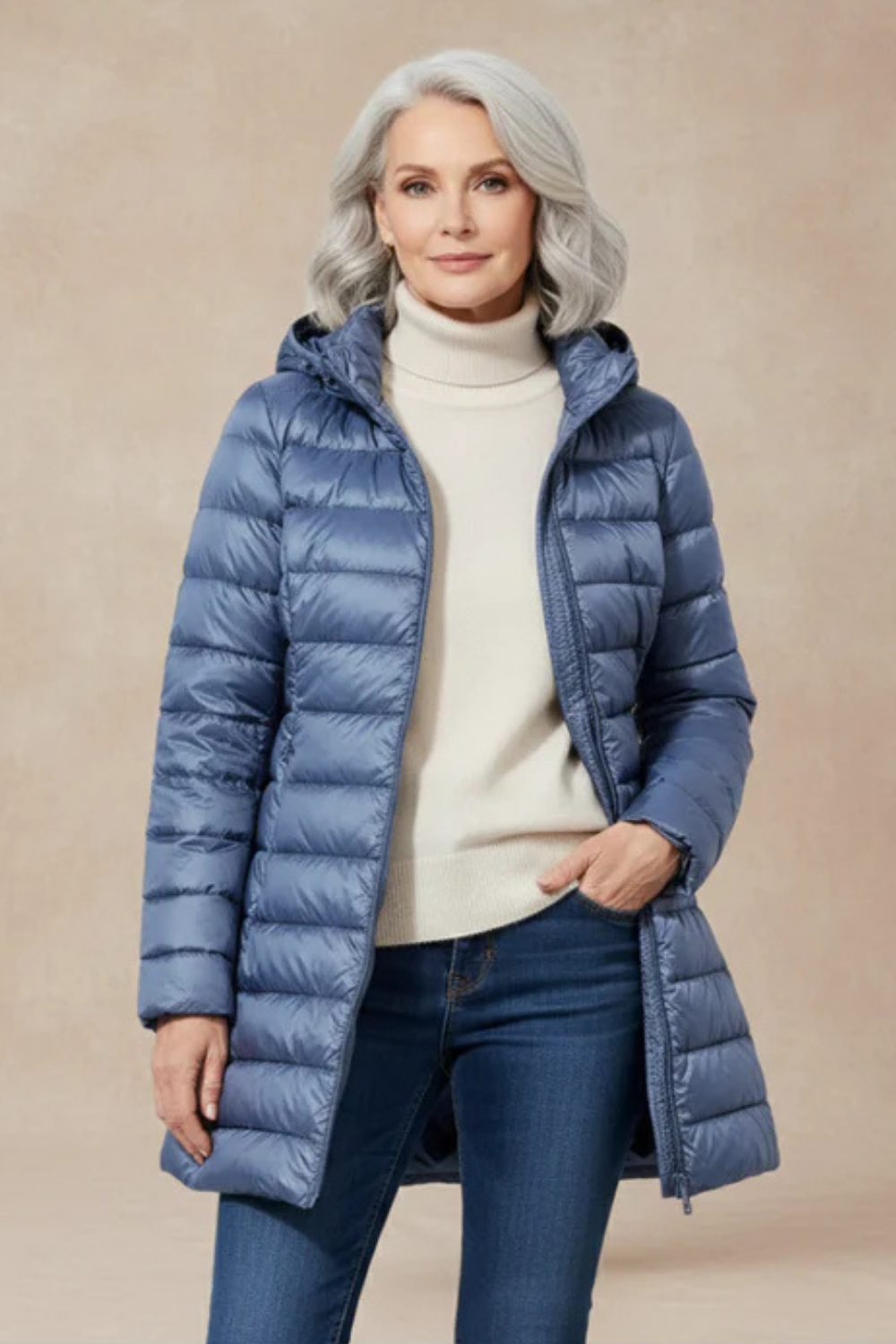 Kurtka idealnie dopasowuje się do sylwetki dzięki paskowi w talii. Wygodna i ciepła, doskonała na chłodne dni.