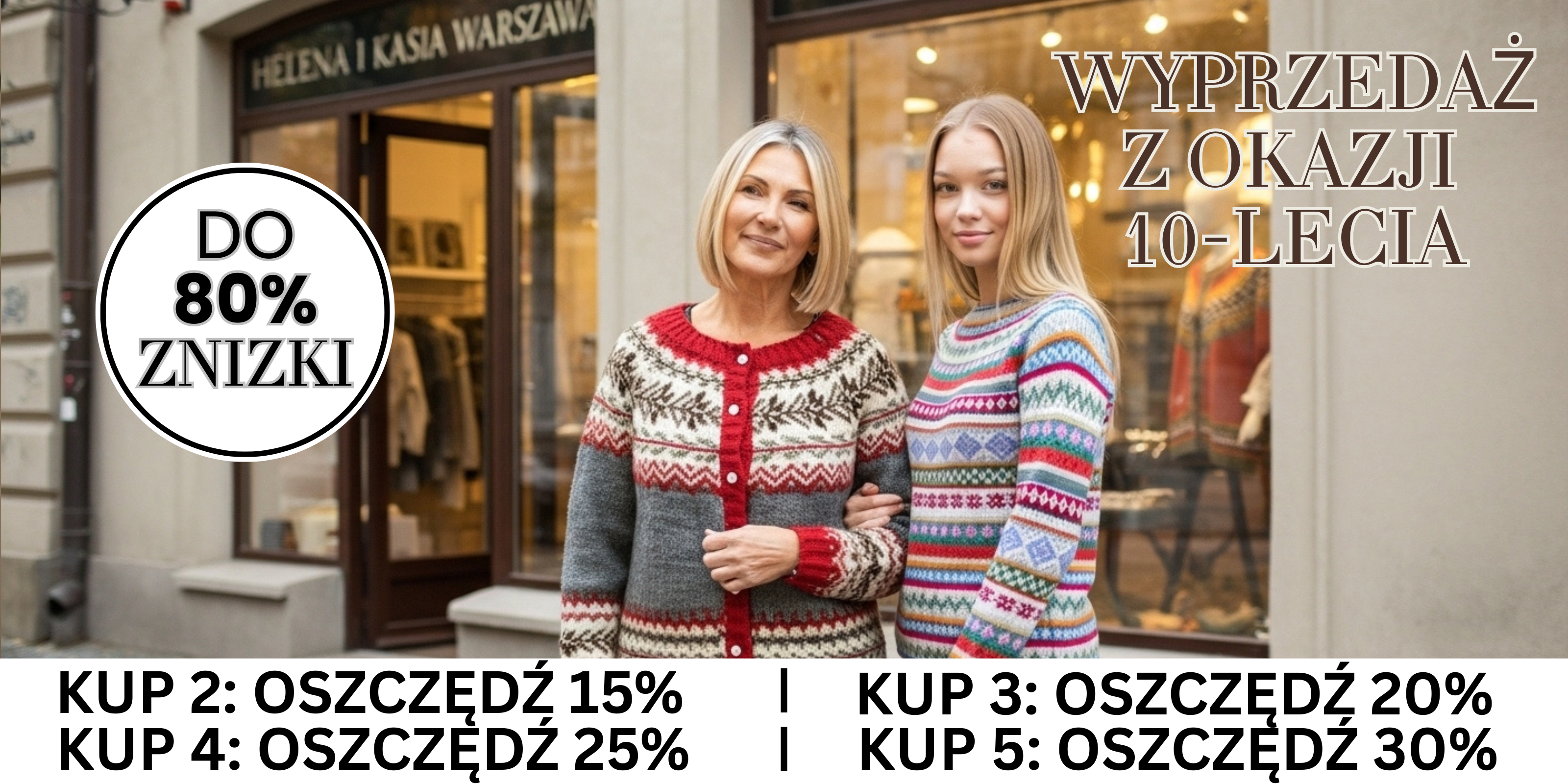 Zniżki naliczają się automatycznie przy kasie. Można łączyć dowolne produkty z kolekcji Wyprzedaży Jubileuszowej.