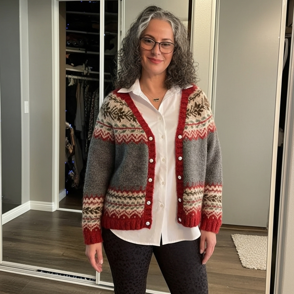„Kardigan jest przepiękny i bardzo starannie wykonany. Od razu czuć, że to wysokiej jakości wełna – miękka, ale jednocześnie solidna. Noszę go prawie codziennie i zawsze dodaje mi uroku.”